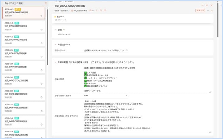 デジタルランクUPノートというツールを活用し、目標の進捗状況を自身で常に把握し対応し、セルフマネジメント能力を高めます。